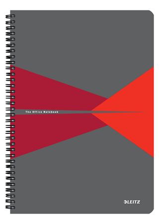 Spirálfüzet, A4, vonalas, 90 lap, PP borító, LEITZ "Office", szürke-piros