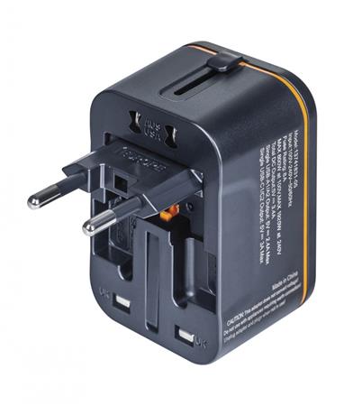 Utazóadapter, univerzális,  DONAU "Travel 205", fekete